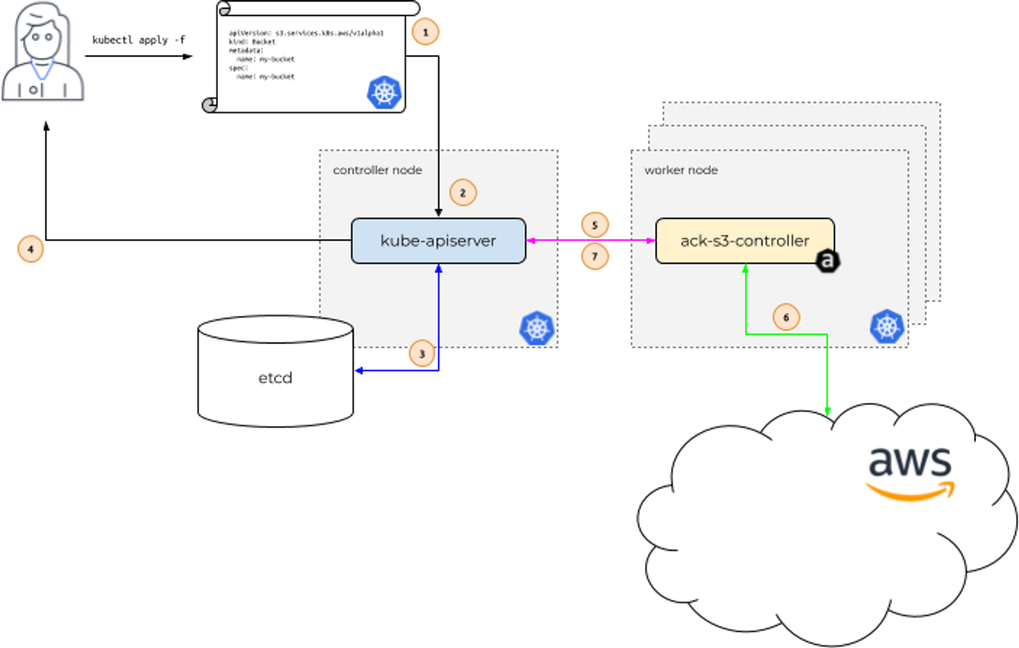 • 예시) 사용자는 kubectl (쿠버네티스 api) 를 사용하여 AWS S3 버킷을 생성 할 수 있다