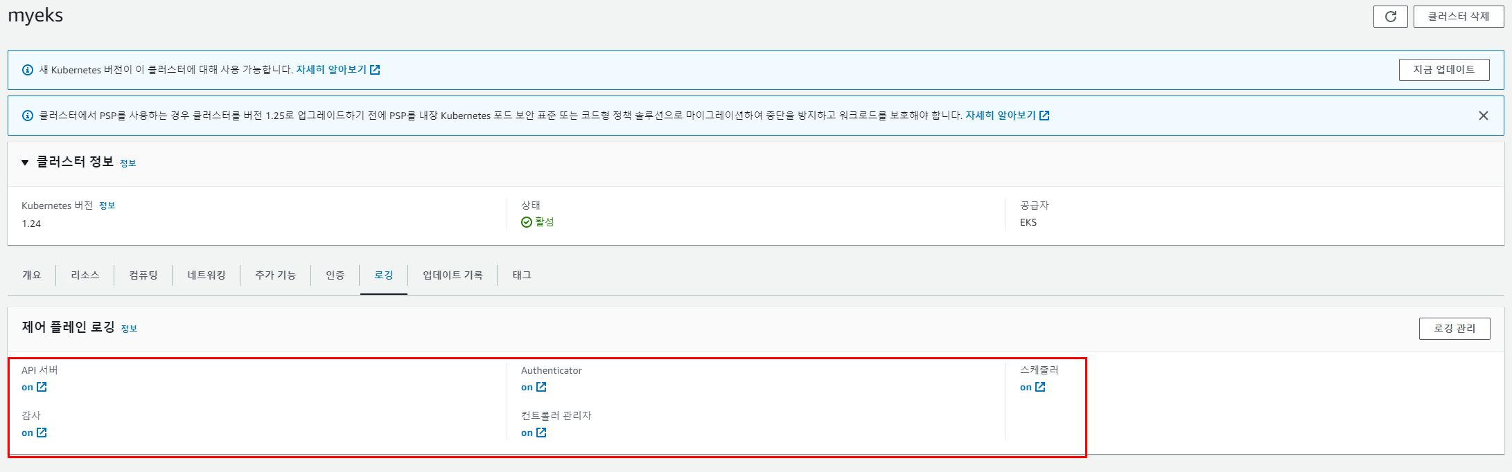 Control Plane logging : 로그 이름( /aws/eks/<cluster-name>/cluster ) - Docs