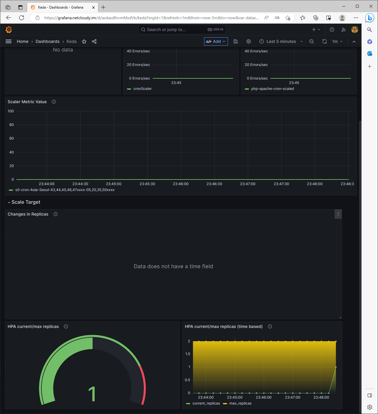 KEDA with Helm : 특정 이벤트(cron 등)기반의 파드 오토 스케일링 - Chart Grafana Cron