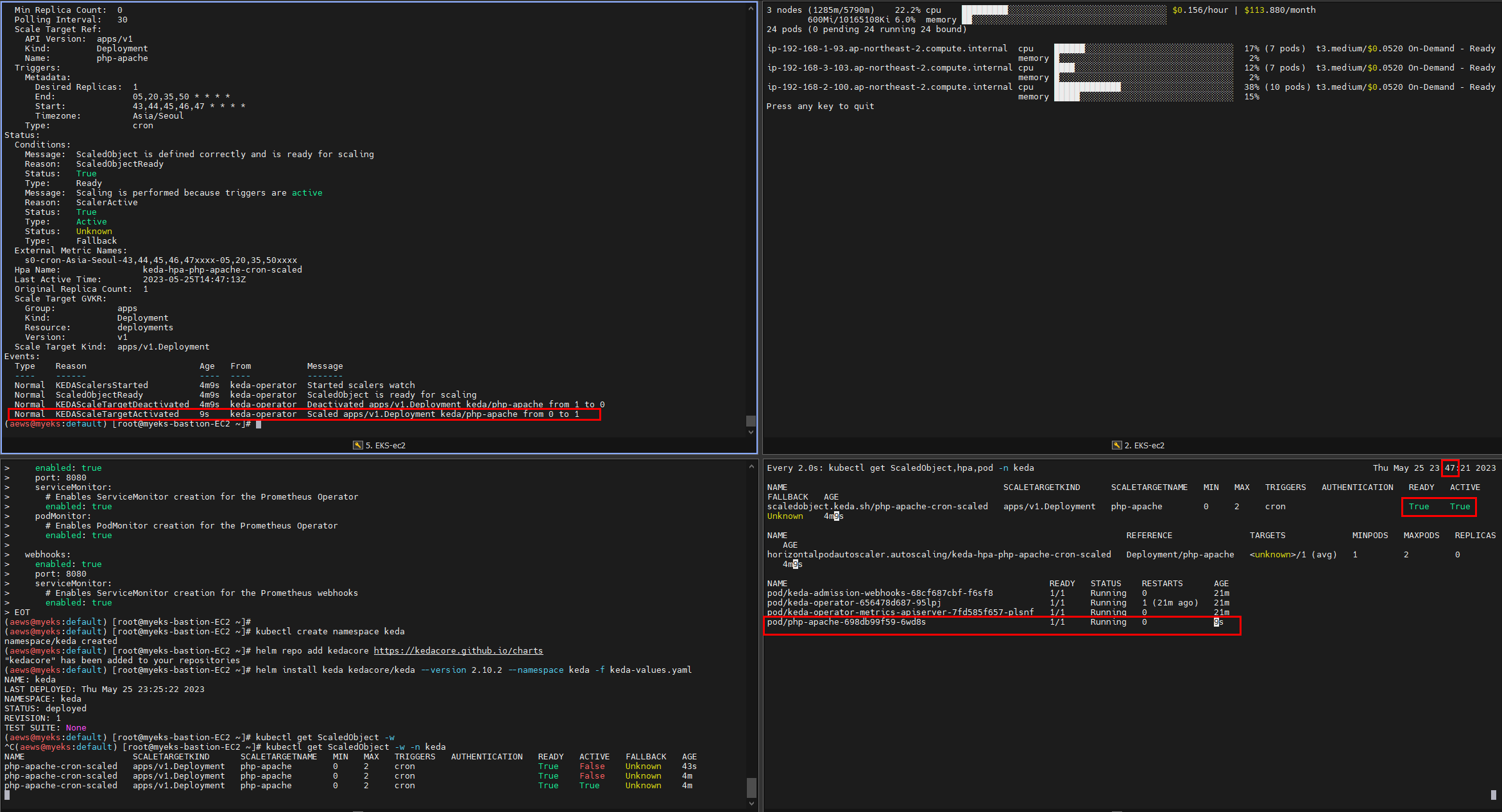47분이 되어 KEDA에 의해 php-apache pod가 하나 늘어났다