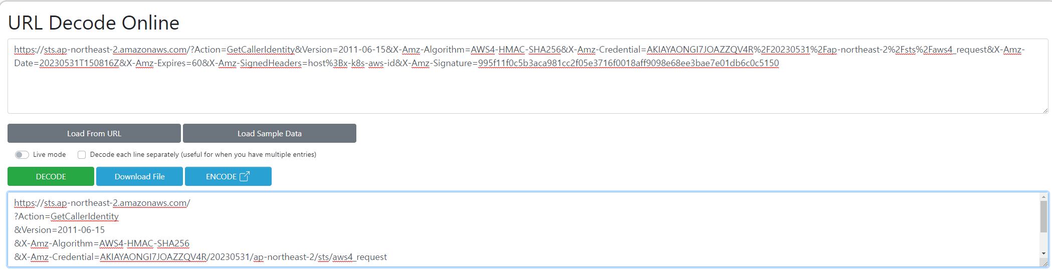 X-Amz-Credential=AKIA5ILF.../20230525/ap-northeast-2/sts/aws4_request&