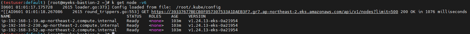 - [myeks-bastion-2] testuser kubectl 사용 확인