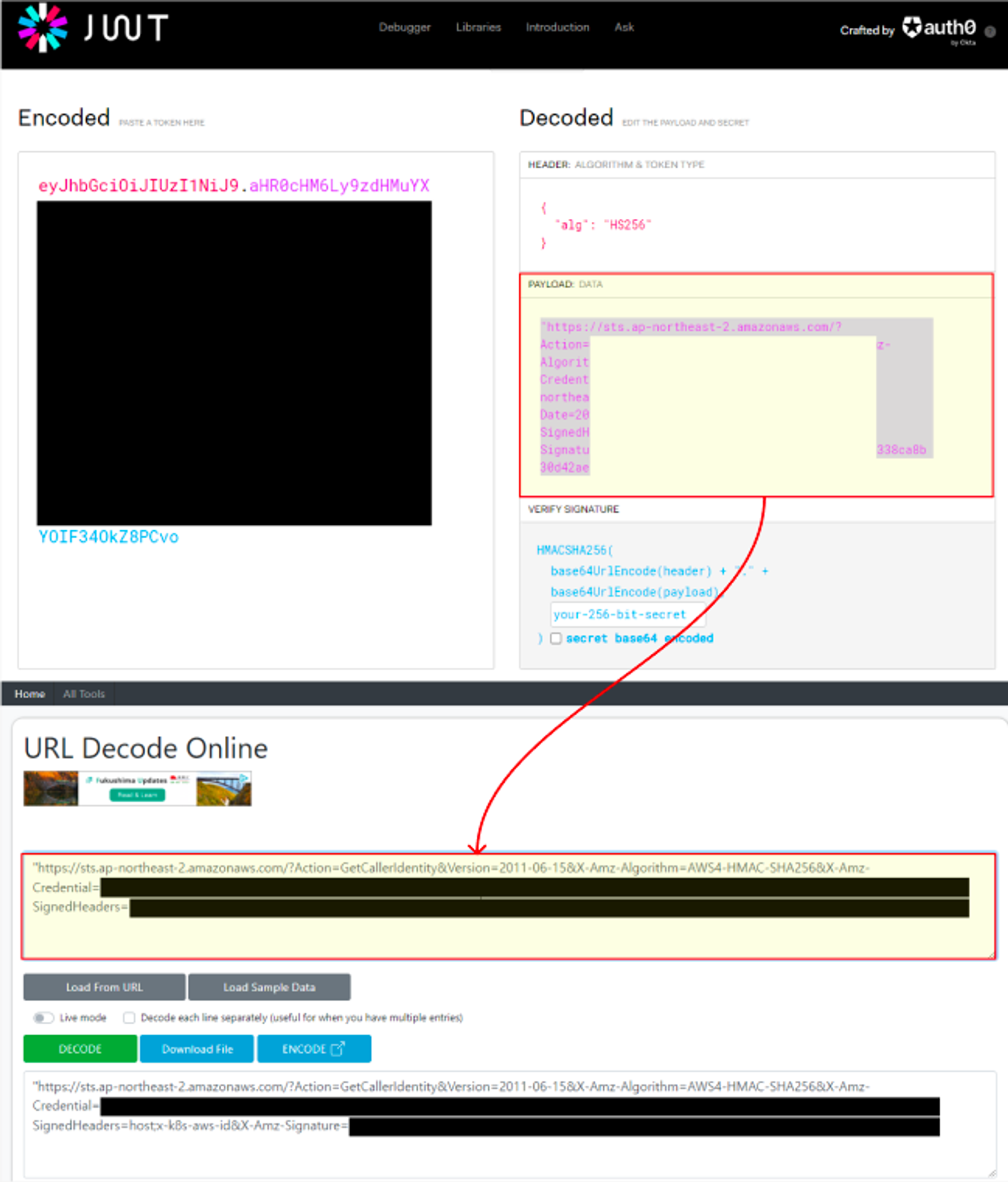 - PAYLOAD의 값을 URL Decode Online 에서 DECODE로 확인 - 링크