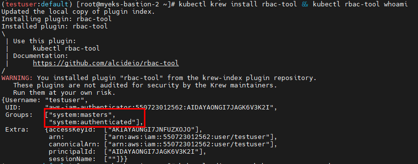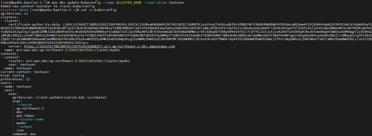 - [myeks-bastion-2] testuser 자격증명 설정 및 확인