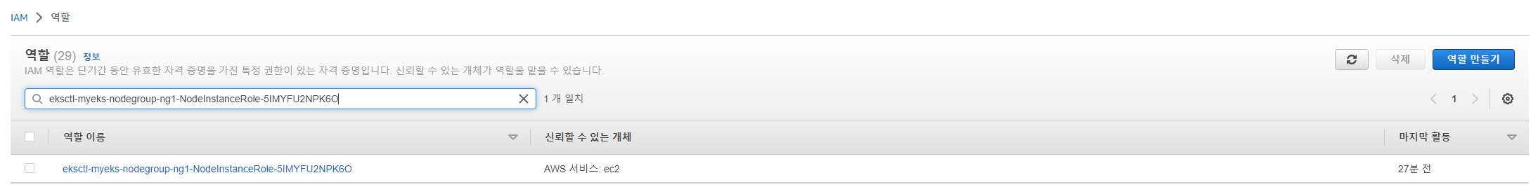 # 확인 : 기존에 있는 role/eksctl-myeks-nodegroup-ng1-NodeInstanceRole-YYYYY 는 어떤 역할/동작을 하는 걸까요?
