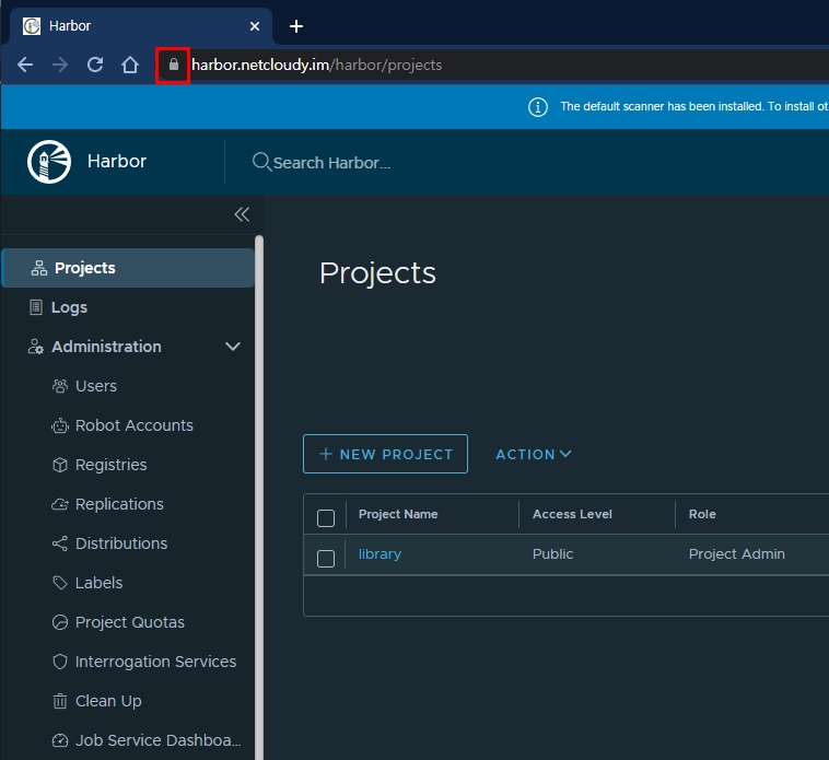 Project - Configuration 에서 Automatically scan images on push 를 체크해주자