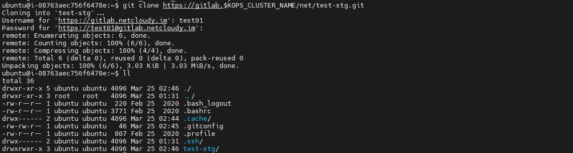 argocd repo add https://gitlab.$KOPS_CLUSTER_NAME/<깃랩 계정명>/test-stg.git --username <깃랩 계정명> --password <깃랩 계정 암호>