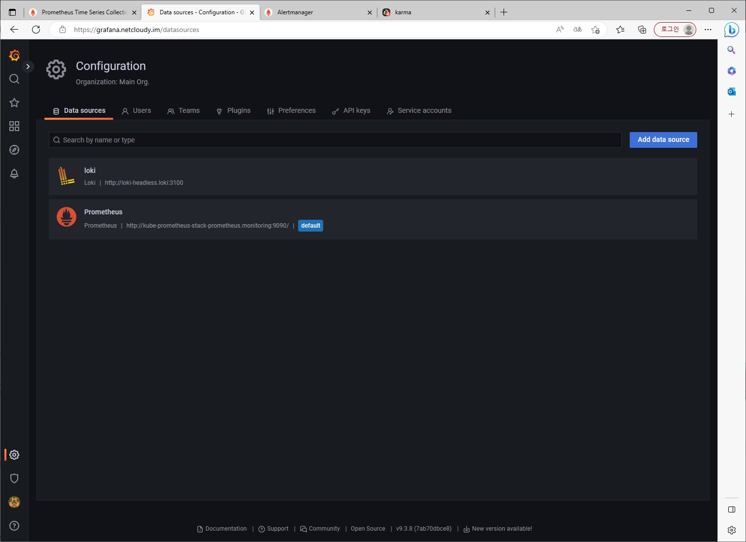 기본적으로 prometheus, alertmanager, grafana가 배포된다.