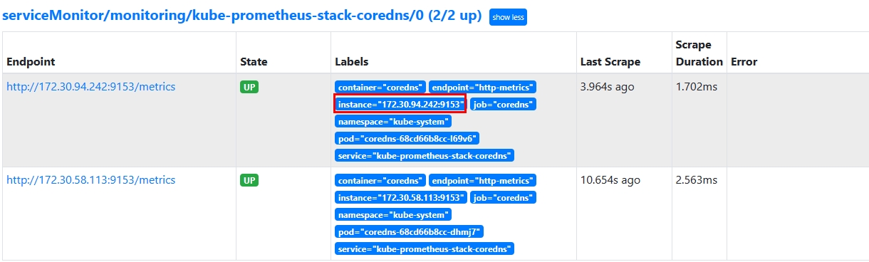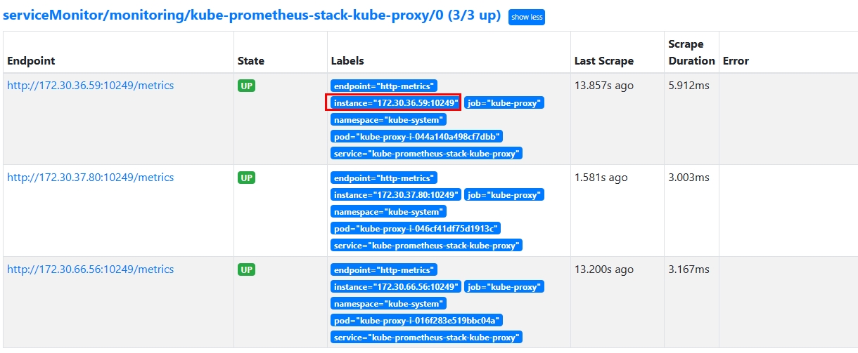 ## 기존 프로메테우스 정책을 받을 때 현재 배포한 프로메테우스 node exporter가 어떤 이름인지 확인