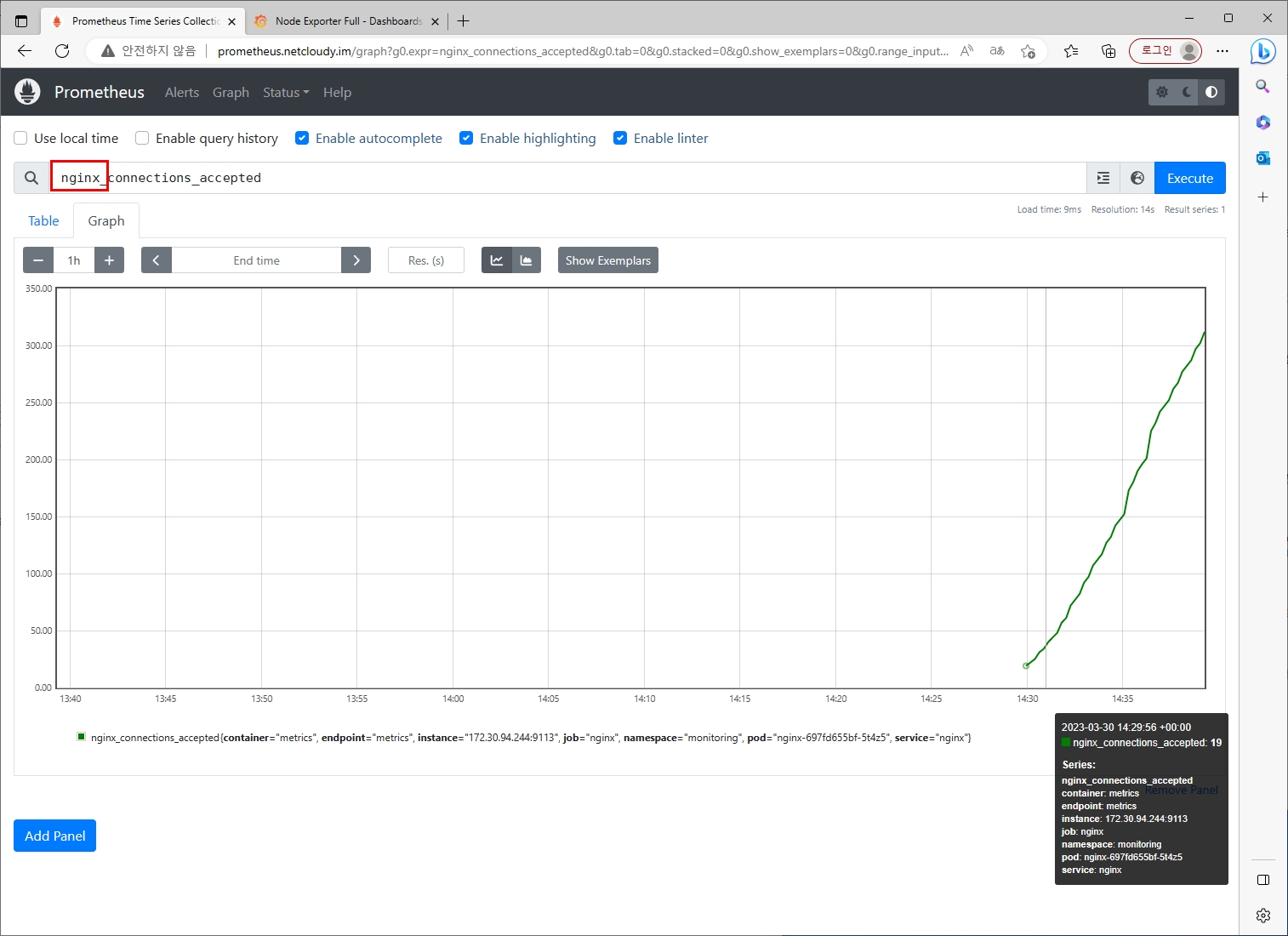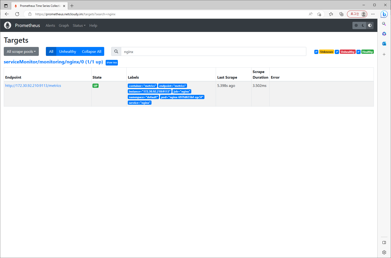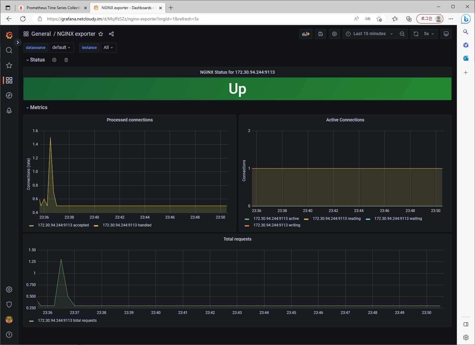 Nginx 파드를 배포 후 관련 metric 를 프로메테우스 웹에서 확인하고, 그라파나에 nginx 웹서버 대시보드를 추가 후 확인해보세요