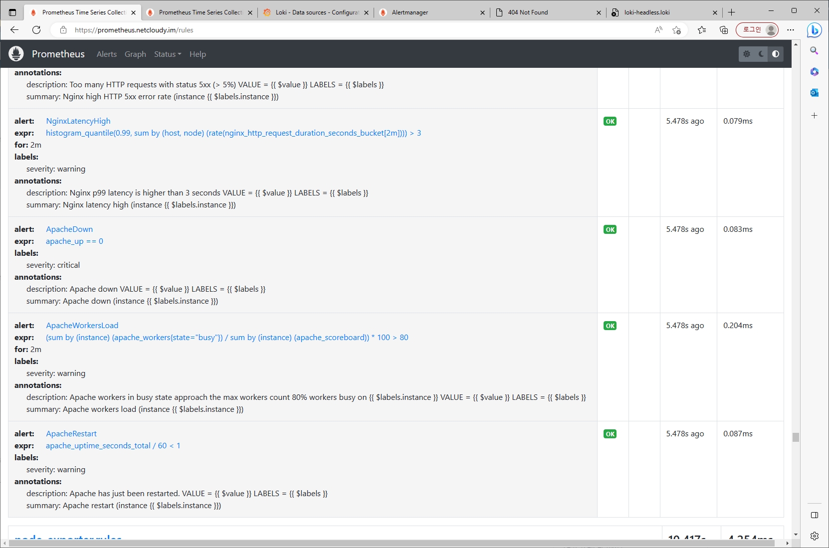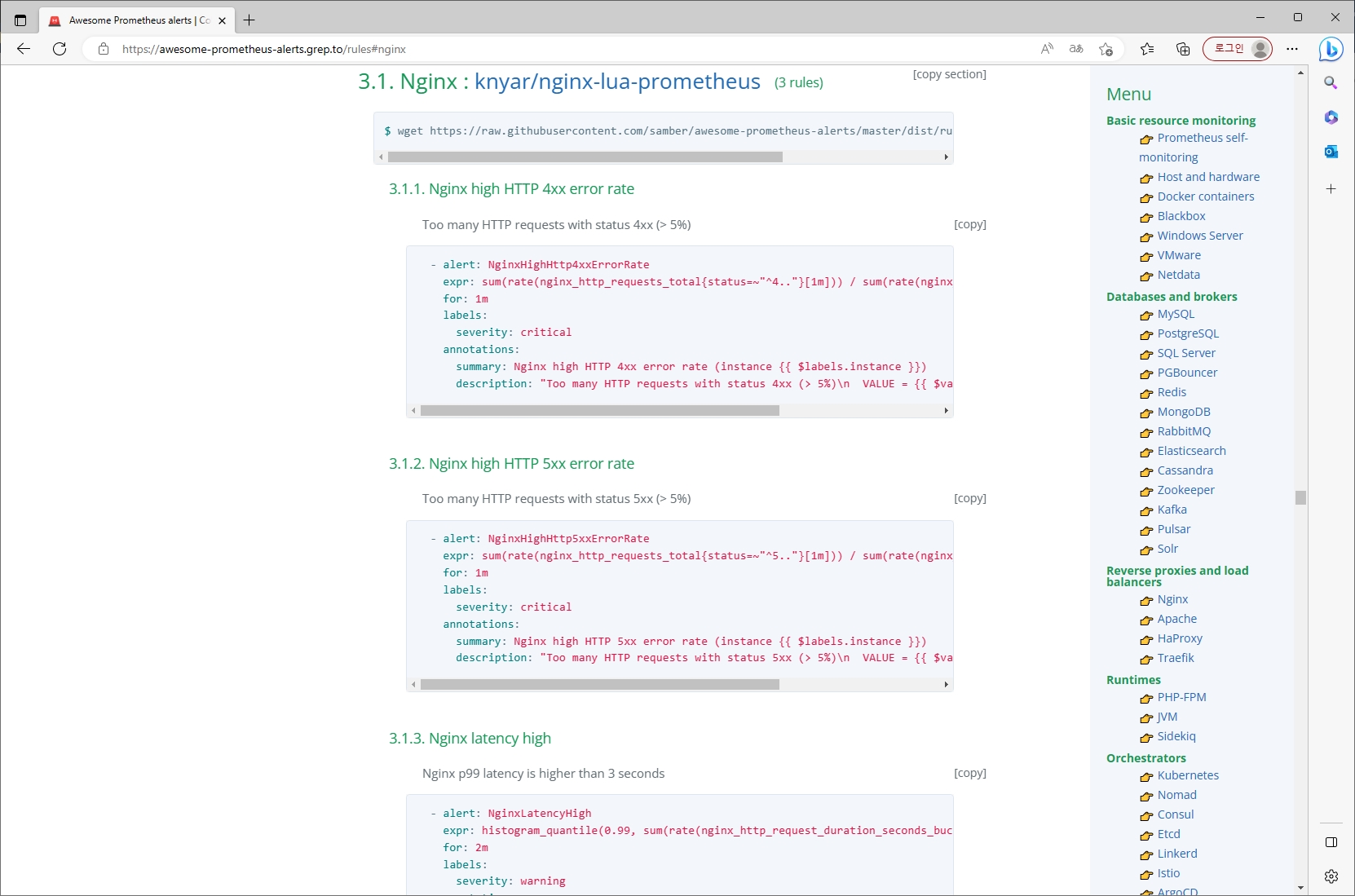 사실 해당 내용은 실습 때 했던 거라 단순하게 생각했지만 Awesome Prometheus alerts 에서 nginx를 찾아보고나서 눈에 번뜩이는 것이 있었다.
