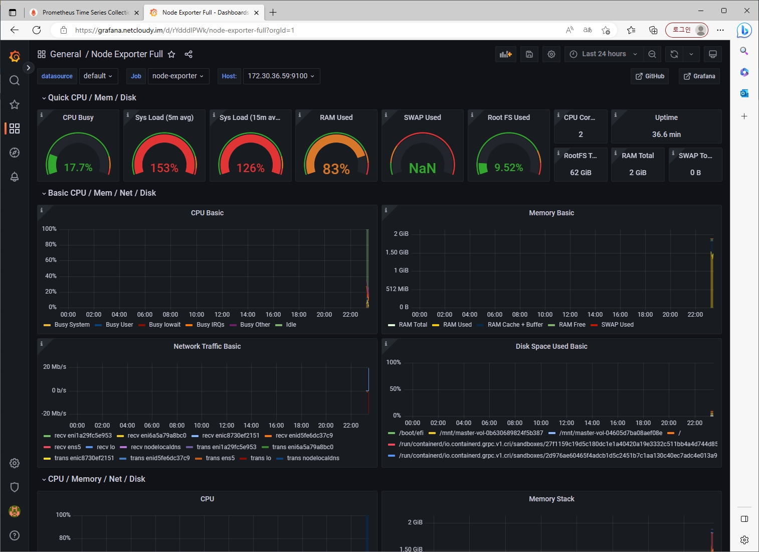 ## node-exporter : 노드익스포터는 물리 노드에 대한 자원 사용량(네트워크, 스토리지 등 전체) 정보를 메트릭 형태로 변경하여 노출