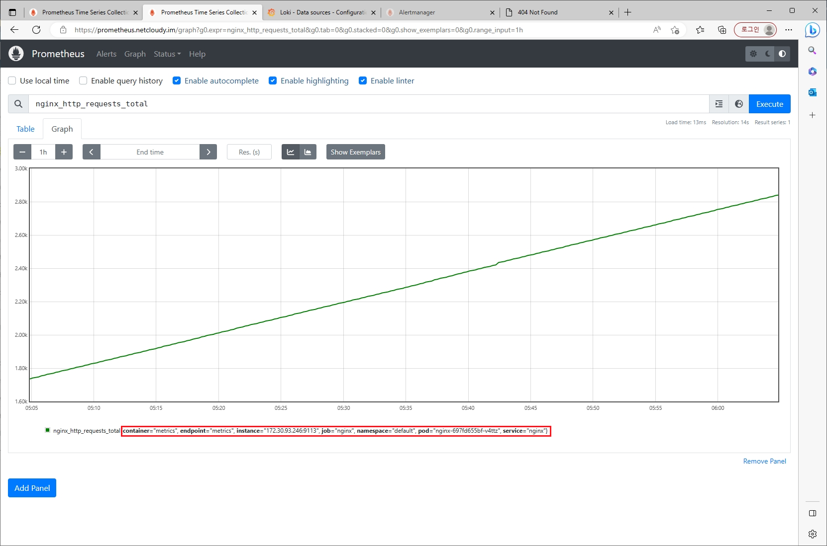 그것은 바로 우리가 헬름 차트로 배포했던 nginx 의 기본 metric은 nginx_http_requests_total을 단순히 count만 하기 때문에 어떤 코드(ex, 2xx, 4xx, 5xx)인지 분류가 되지 않았다.