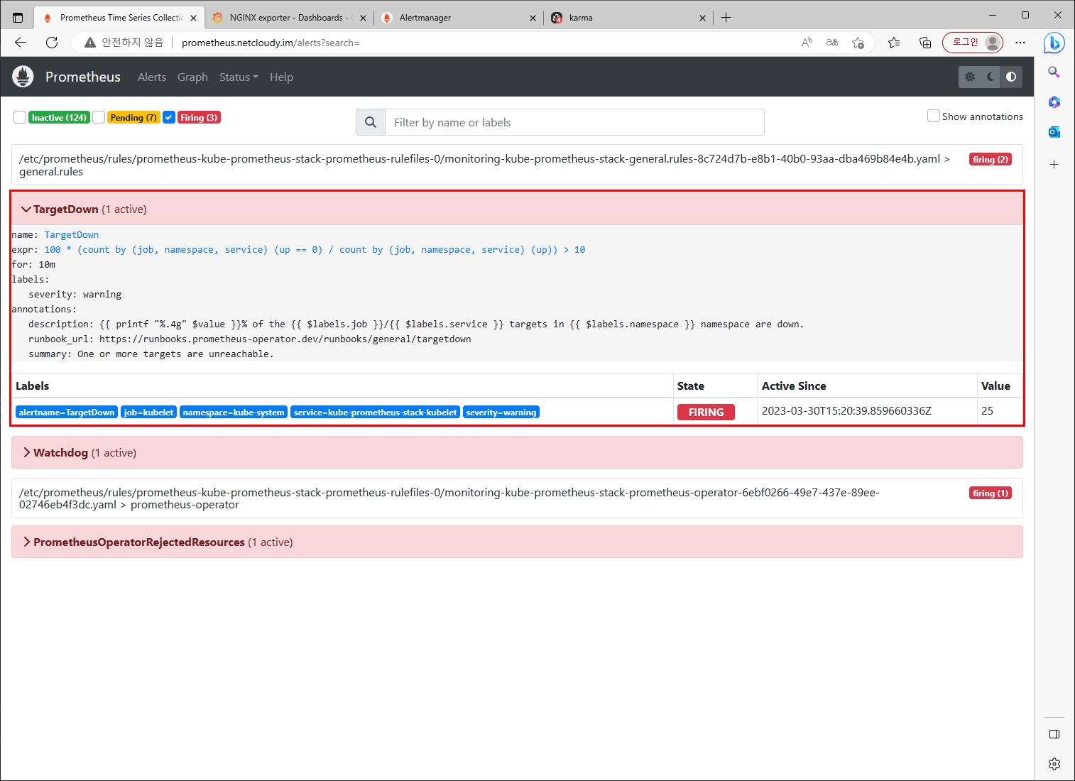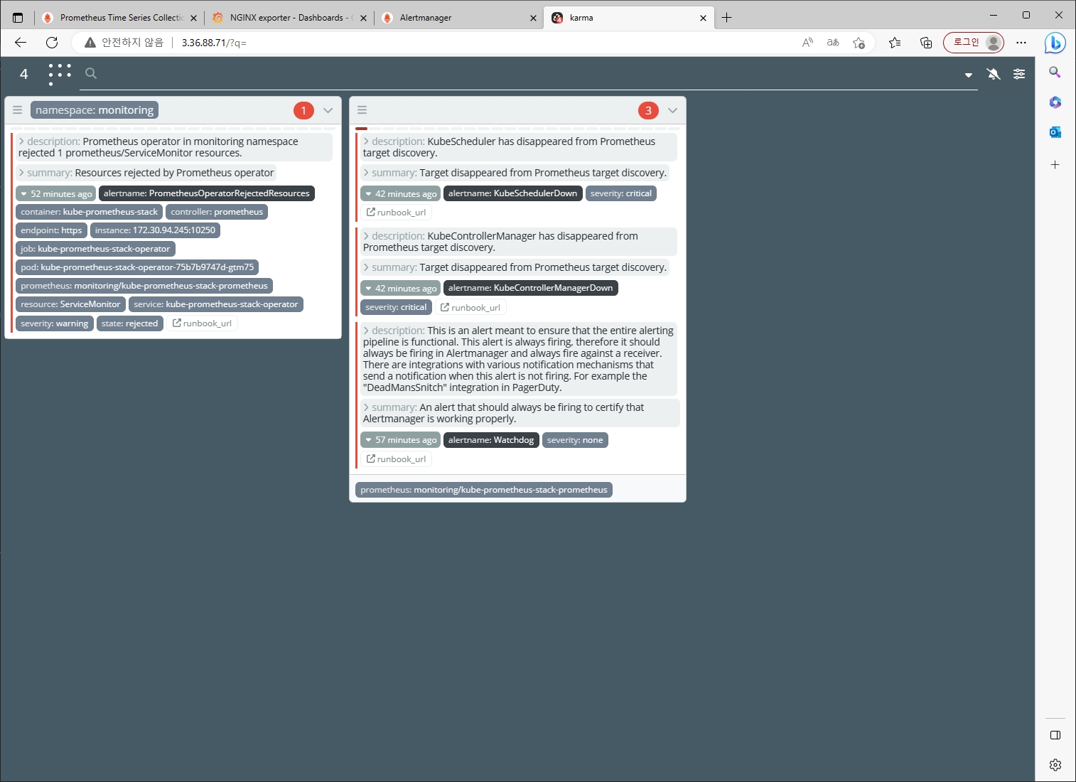 Awesome Prometheus alerts 를 참고해서 스터디에서 배우지 않은 Alert Rule 생성 및 적용 후 관련 스샷을 올려주세요