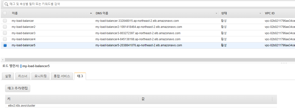 'Key': 'elbv2.k8s.aws/cluster', ## 태그 추가