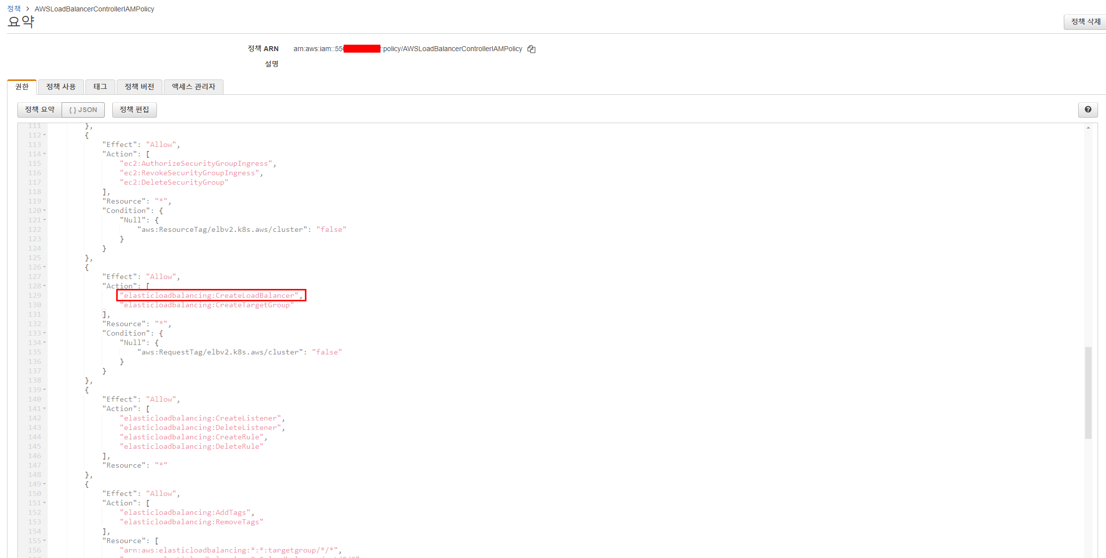 kops 클러스터 배포하고나서 항상 작업하는 AWSLoadBalancerControllerIAMPolicy 정책 추가를 하고나면 아래와 같은 권한이 추가로 생긴다.