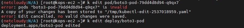 pod 수정은 정상적인 부분을 수정하지 않아서 취소 처리됨