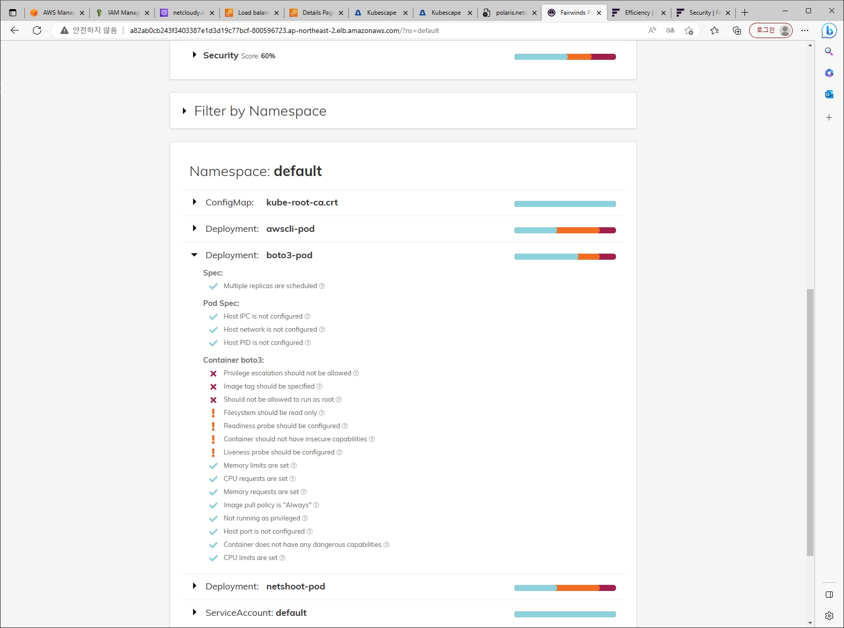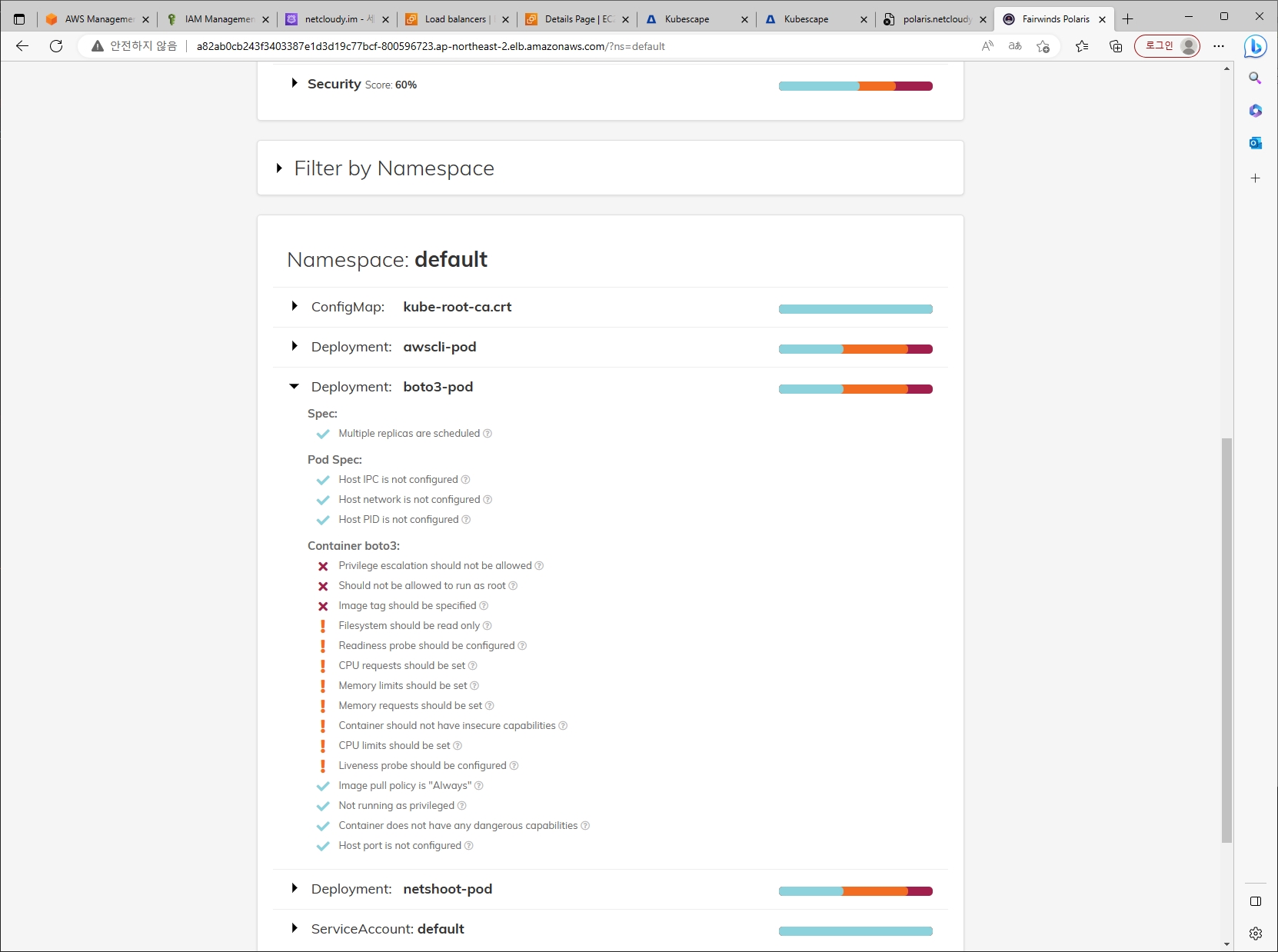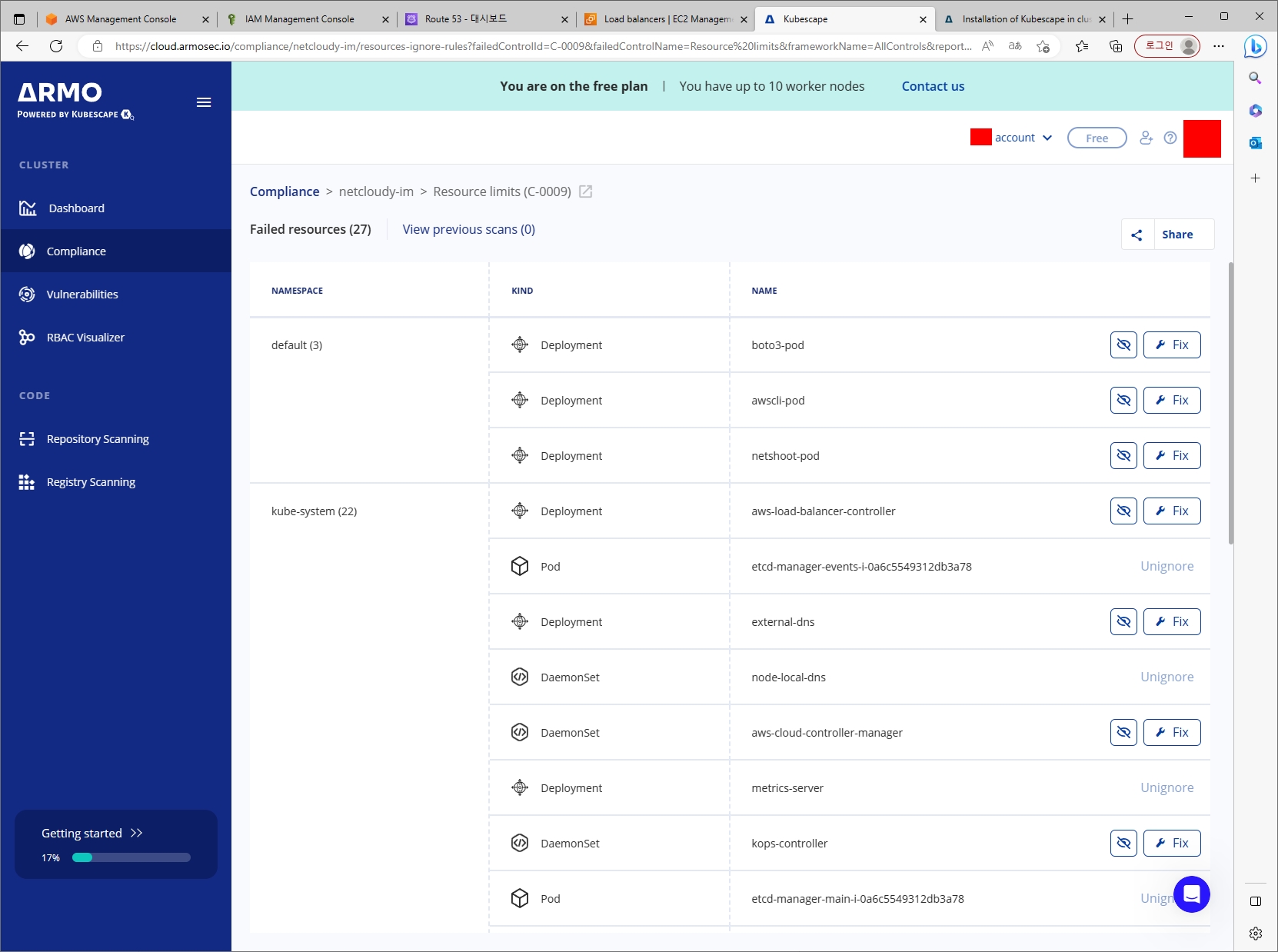 [과제2] 책 398~400페이지 - kubescape armo 웹 사용 후 관련 스샷