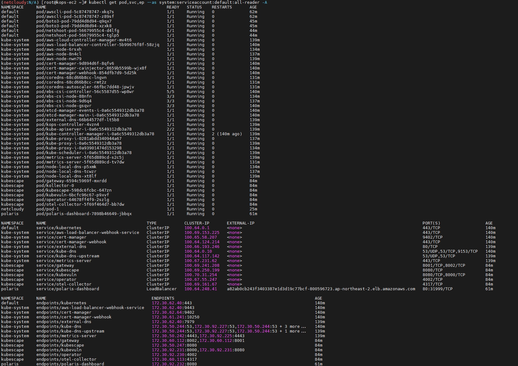 모든 네임스페이스의 pod,service,endpoint 확인