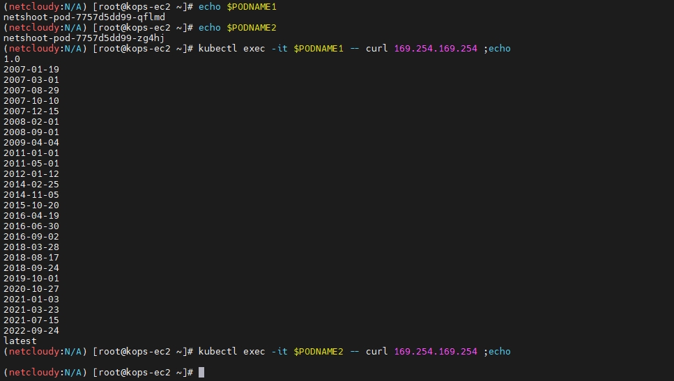 kubectl exec -it $PODNAME2 -- curl 169.254.169.254 ;echo