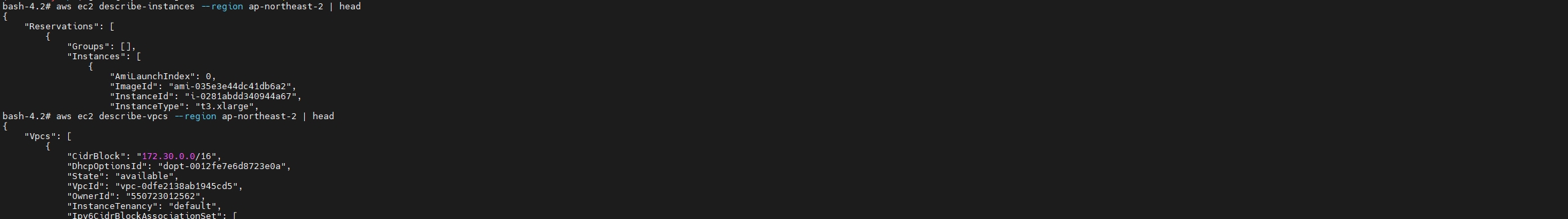 첫번째 netshoot-pod 가 보안설정이 해제된 node-ap-northeast-2a 에 배포되었기 때문에 메타데이터 정보를 확인할 수 있게 되었다.
