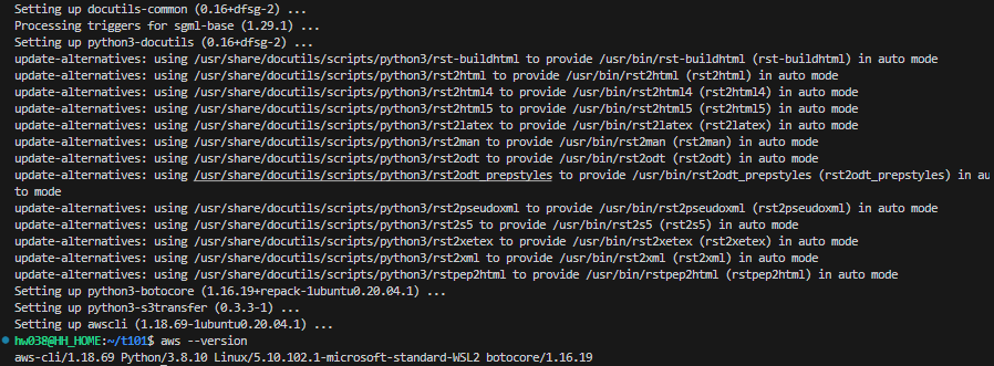 저는 이미 aws credential을 설정해두어서 관련 정보가 다 나오는군요.