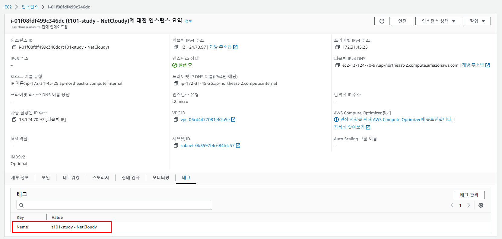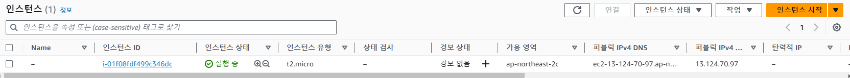 # ec2 생성 확인 : aws 웹 관리 콘솔에서도 확인 - 서울 리전 선택