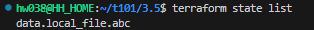 abc.txt 파일을 생성하고 init, plan, apply를 하게되면 state list를 통해서 데이터 소스에 대한 정보를 확인할 수 있다.