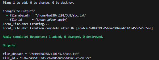 - 주의할 점은 output 결과에서 리소스 생성 후 결정되는 속성 값은 프로비저닝이 완료되어야 최종적으로 결과를 확인할 수 있고 terraform plan 단계에서는 적용될 값이 출력하지 않는다는 것이다.