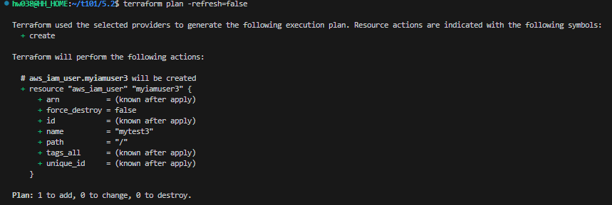 # 실행 계획 생성 시 실제 형상과 비교하지 않고 실행 계획을 생성하는 -refresh=false 옵션