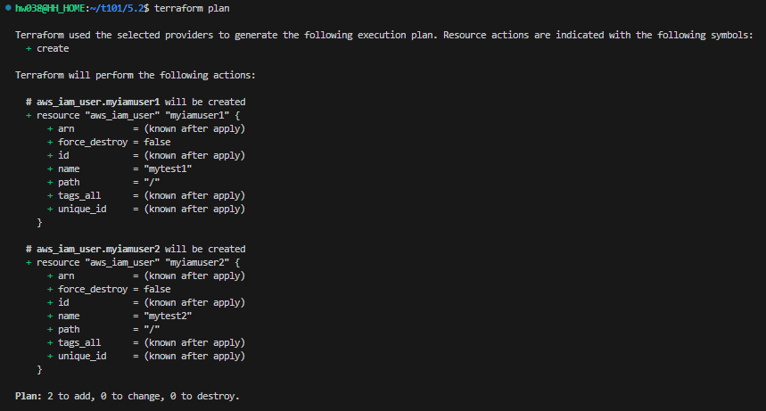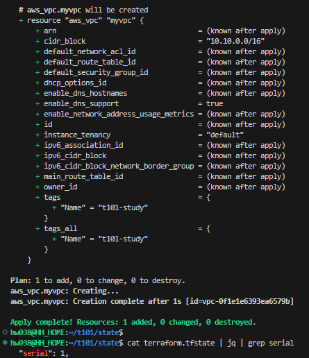 # Local에 State 파일이 없으므로 두 명령 모두 새로운 리소스 추가(add) 계획