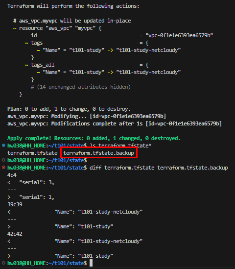 diff terraform.tfstate terraform.tfstate.backup
