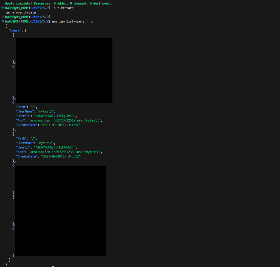 # 이미 리소스가 있으므로 Error 발생: EntityAlreadyExists: User with name mytest1 already exists.