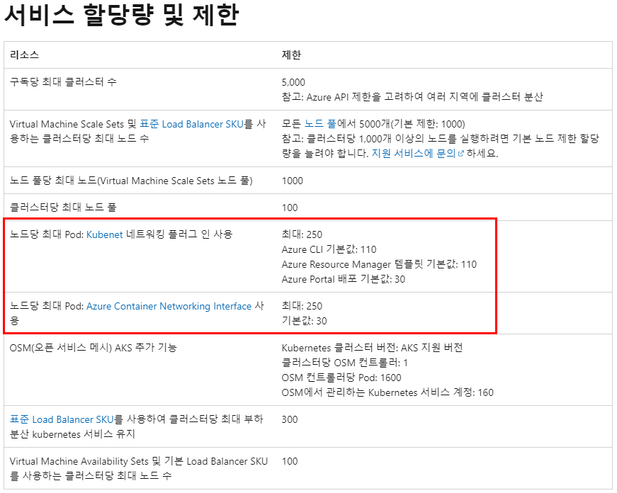 또한 EKS와 다른 점은 AKS는 노드 당 최대 Pod 갯수 제한을 별도로 설정할 수 있다.