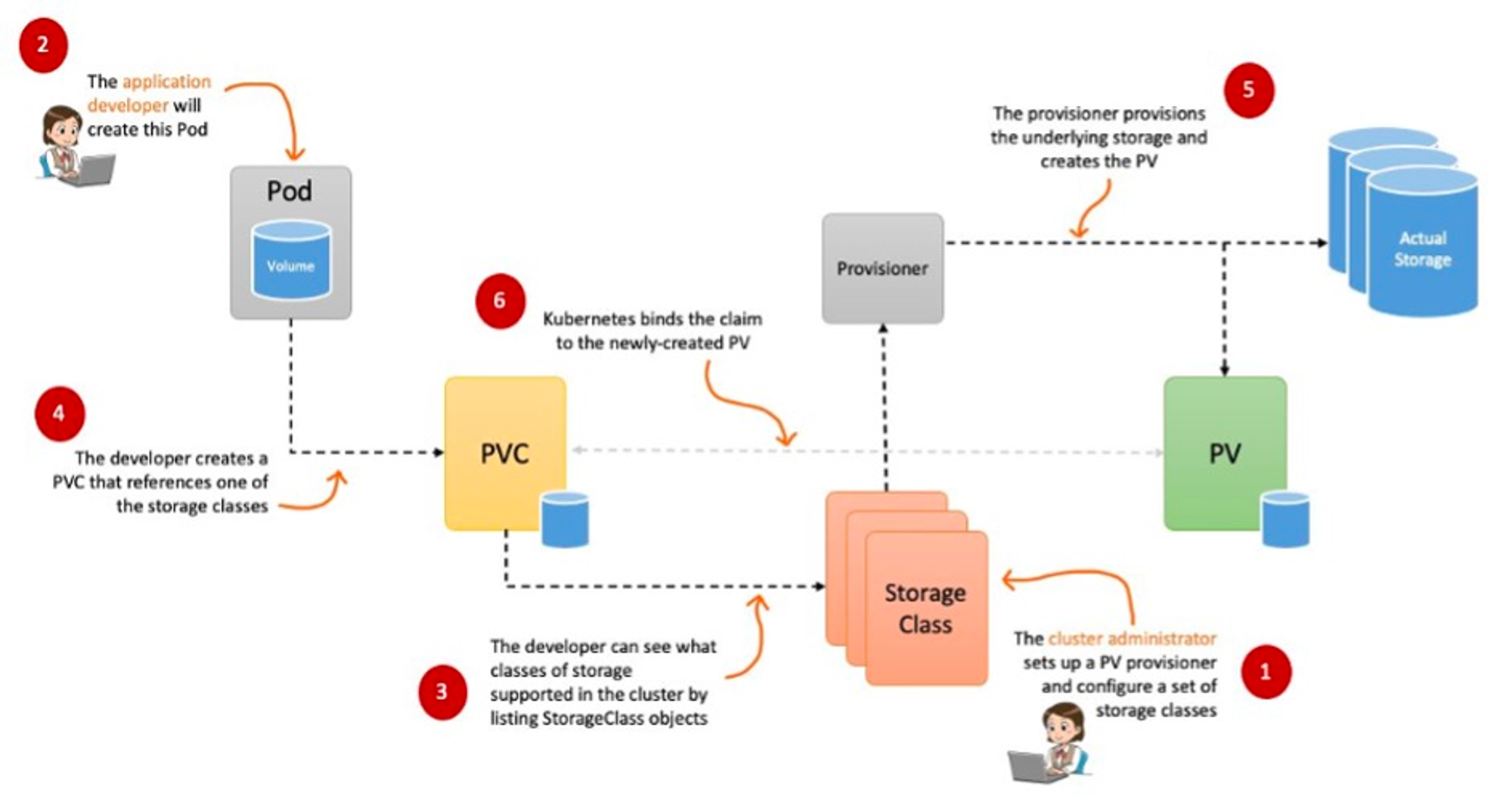 - 파드가 생성될 때 자동으로 볼륨을 마운트하여 파드에 연결하는 기능을 동적 프로비저닝(Dynamic Provisioning)이라고 함(스토리지 클래스 사용)