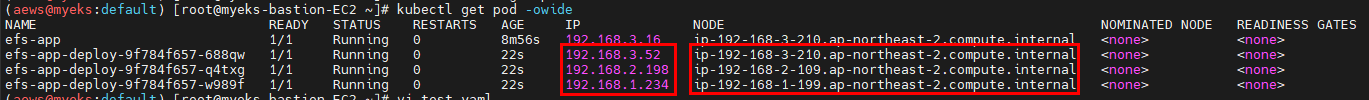 # 파드 생성 및 연동 : 파드 내에 /data 데이터는 EFS를 사용