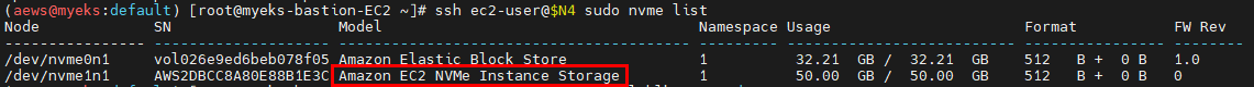 ssh ec2-user@$N4 sudo nvme list