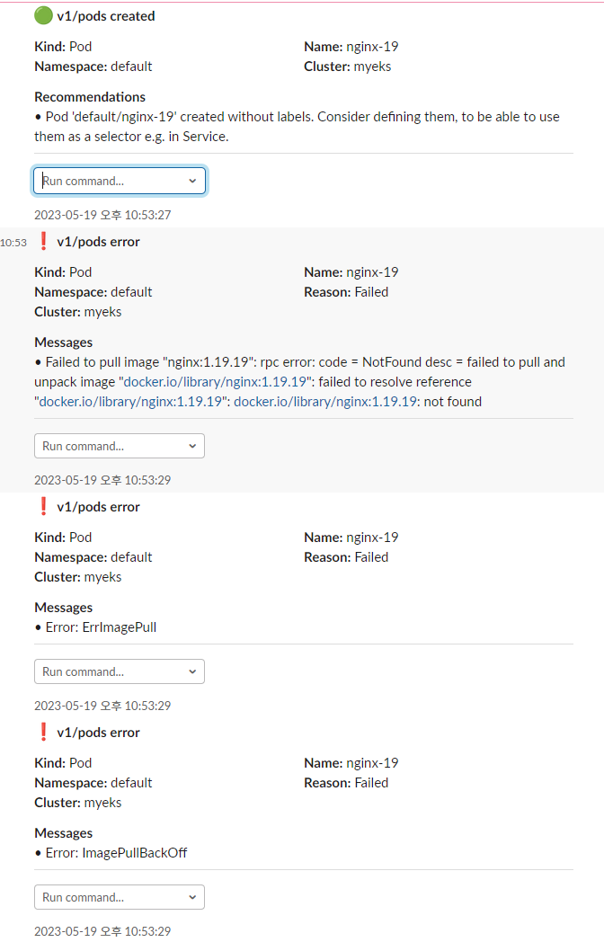 (외부 접속이 차단된 클러스터에 슬랙 연동해두면 내가 외근이여도 개발자들이 pod 배포가 실패했을 때 어떤 이유인지 슬랙채널을 통해 같이 살펴볼 수 있을 것 같다) (그래도 그런 일은 없어야지....제발..)