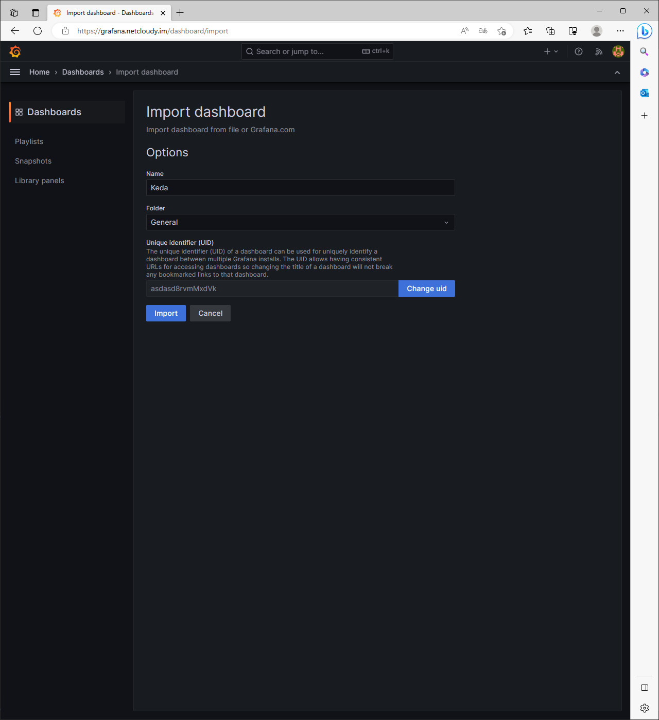 그라파나 대시보드 import 에서 json칸에 붙여넣기
