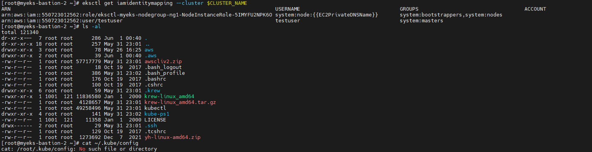 - [myeks-bastion-2] testuser 자격증명 설정 및 확인