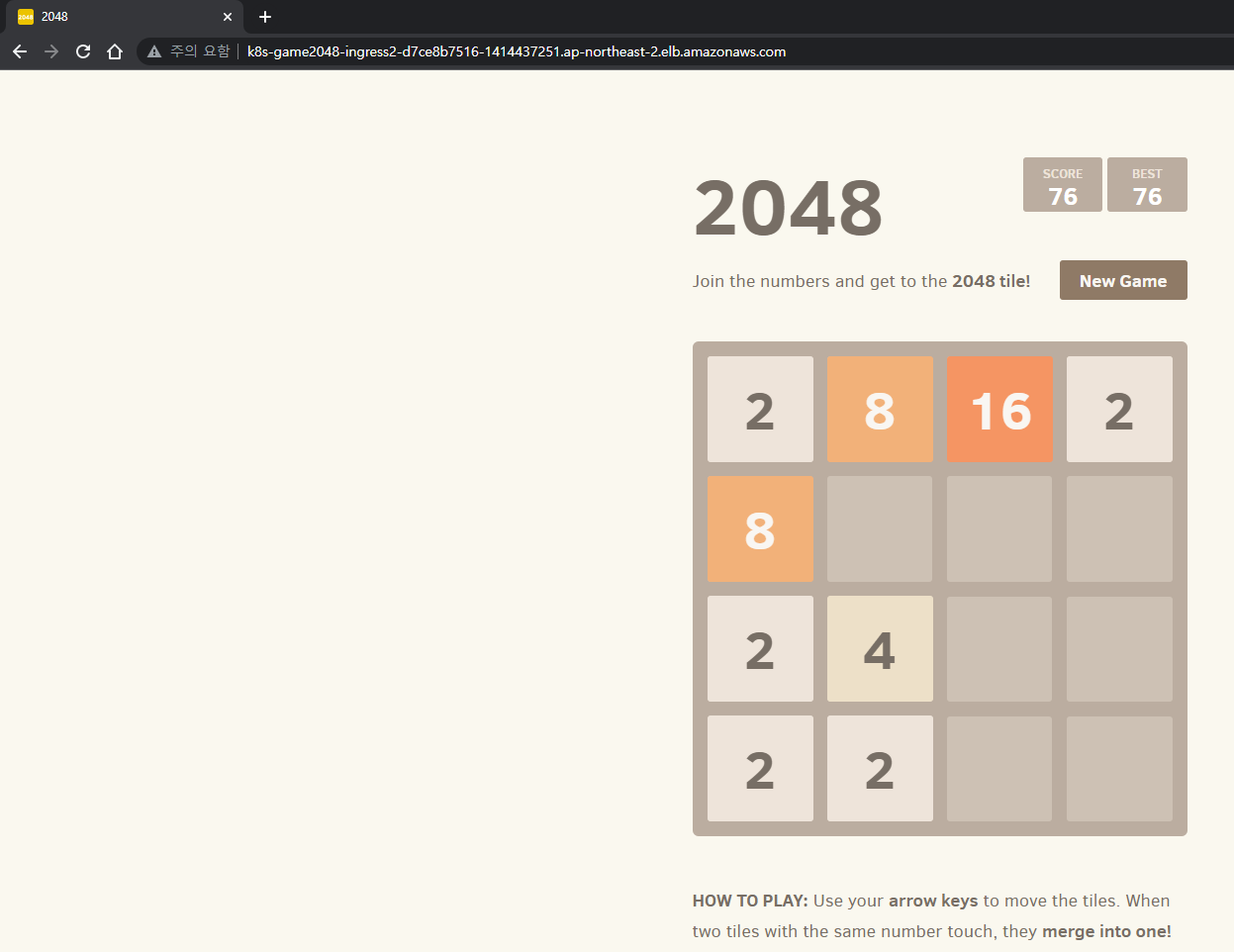 보유한 도메인을 활용하여 최상위 루트(path)에서 2048 게임 플레이되도록 ingress 연동