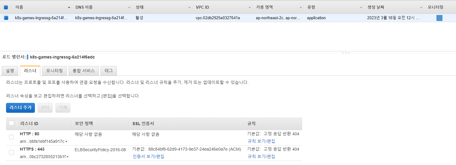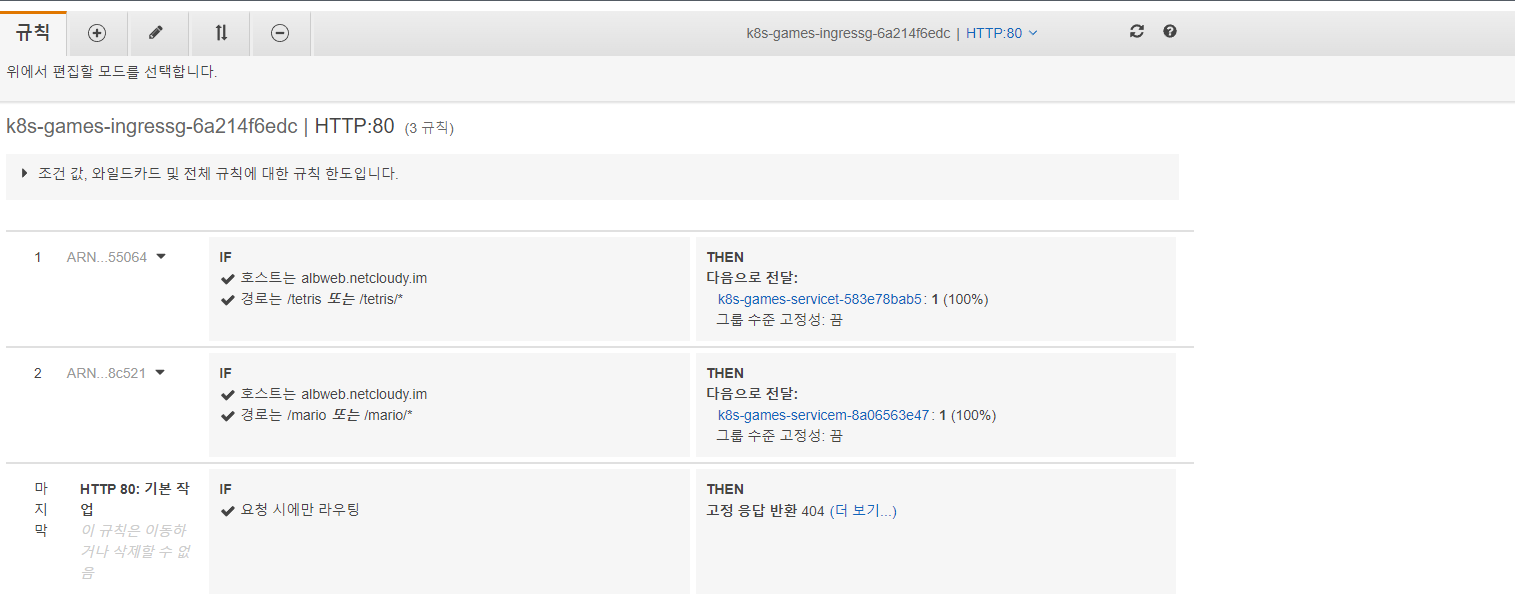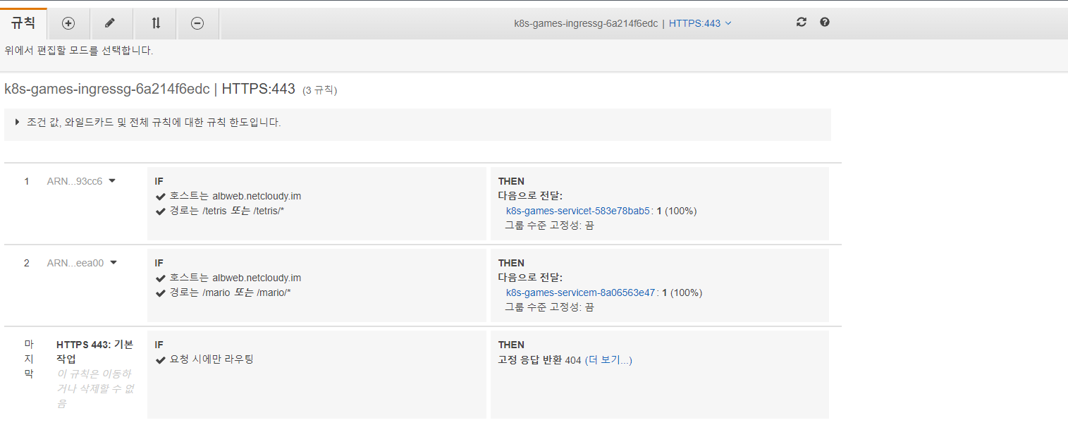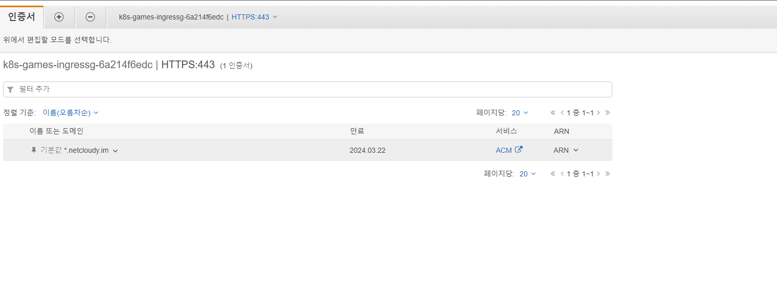 [도전] 목표 : Ingress(with 도메인, 단일 ALB 사용)에 PATH /mario 는 mario 게임 접속하게 설정하고, /tetris 는 tetris 게임에 접속하게 설정하고, SSL(https strip) 적용 해보세요