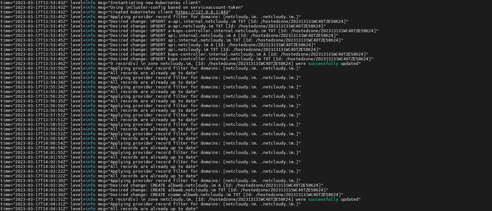 # 적용을 위해서 반드시 노드 롤링업데이트 필요 : 삭제 -> 재생성, 이 과정에서 master node 의 IP(Public, Private) 가 자동으로 변경됨 >> 10분 정도 소요