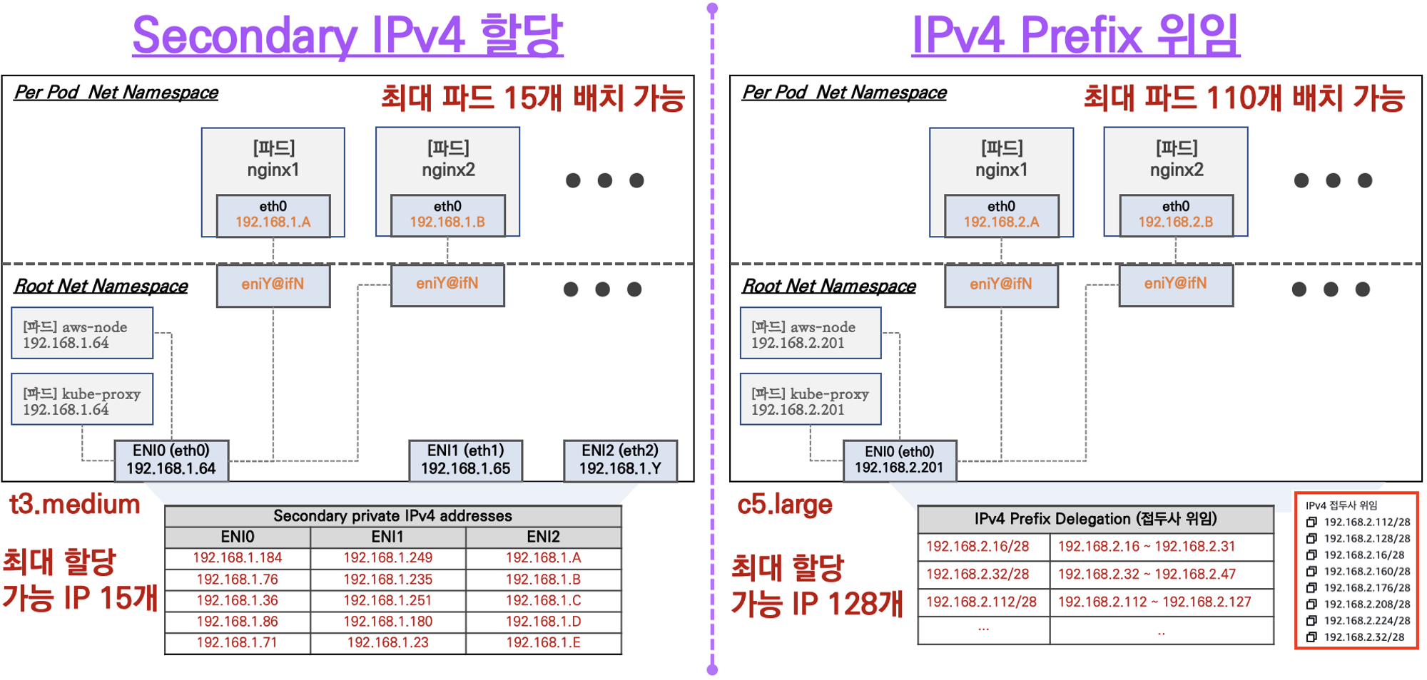 오버레이없이 AWS VPC IP대역을 점유하는 순간부터는 Pod 배포 개수에 대한 문제에서 자유로워질 수 없다.
