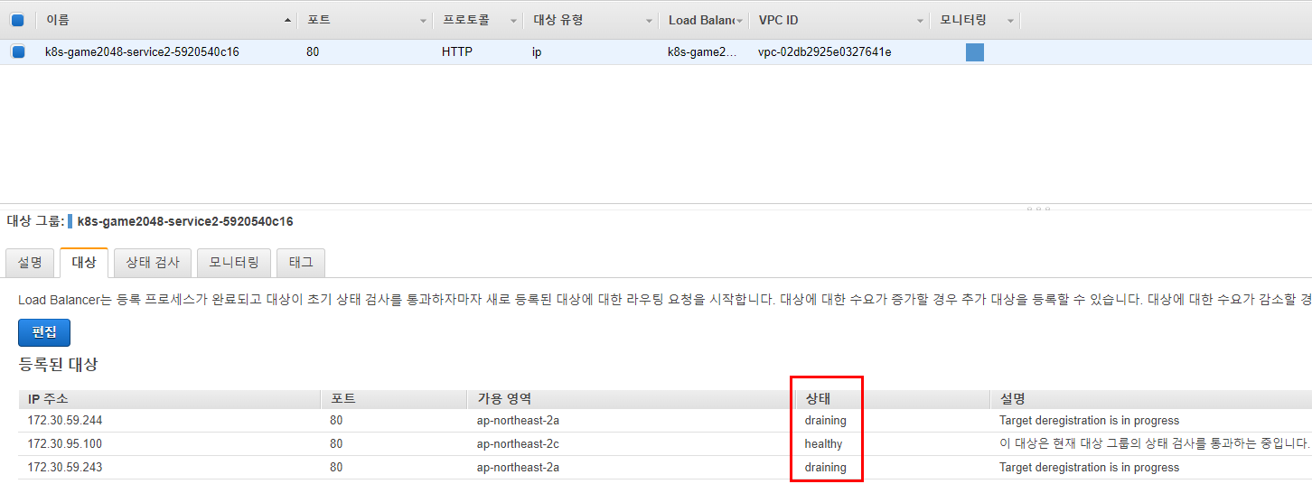 2048 게임을 배포하고 AWS 로드밸런서에 어떻게 나타나는지 확인